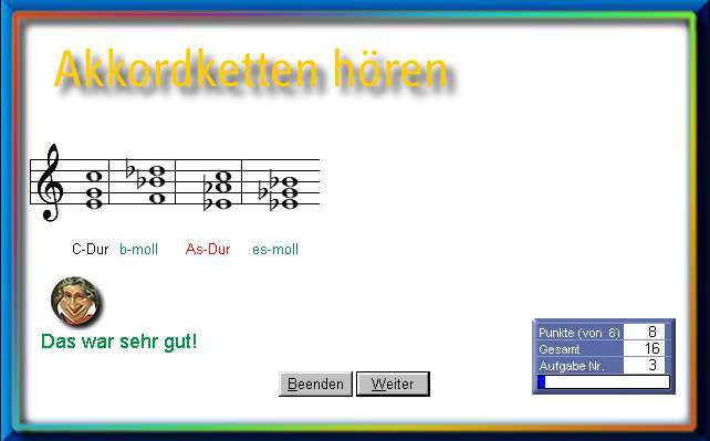 Der Übende muß Grundton und Tongeschlecht des erklingenden Dreiklangs angeben.