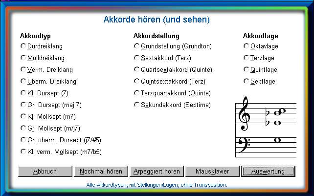 jeweiligen Umkehrungen und Lagen. Je nach Einstellung