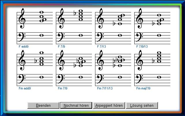 in Gruppen zu acht Akkorden gezeigt werden. Der erklingende Akkord muß dann angeklickt werden.
